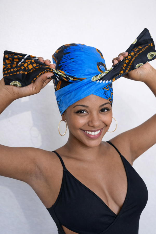 Ce modèle révolutionne l’art du turban moderne : 2 pièces complémentaires, pensées pour sublimer les coupes courtes tout en garantissant un maintien parfait.