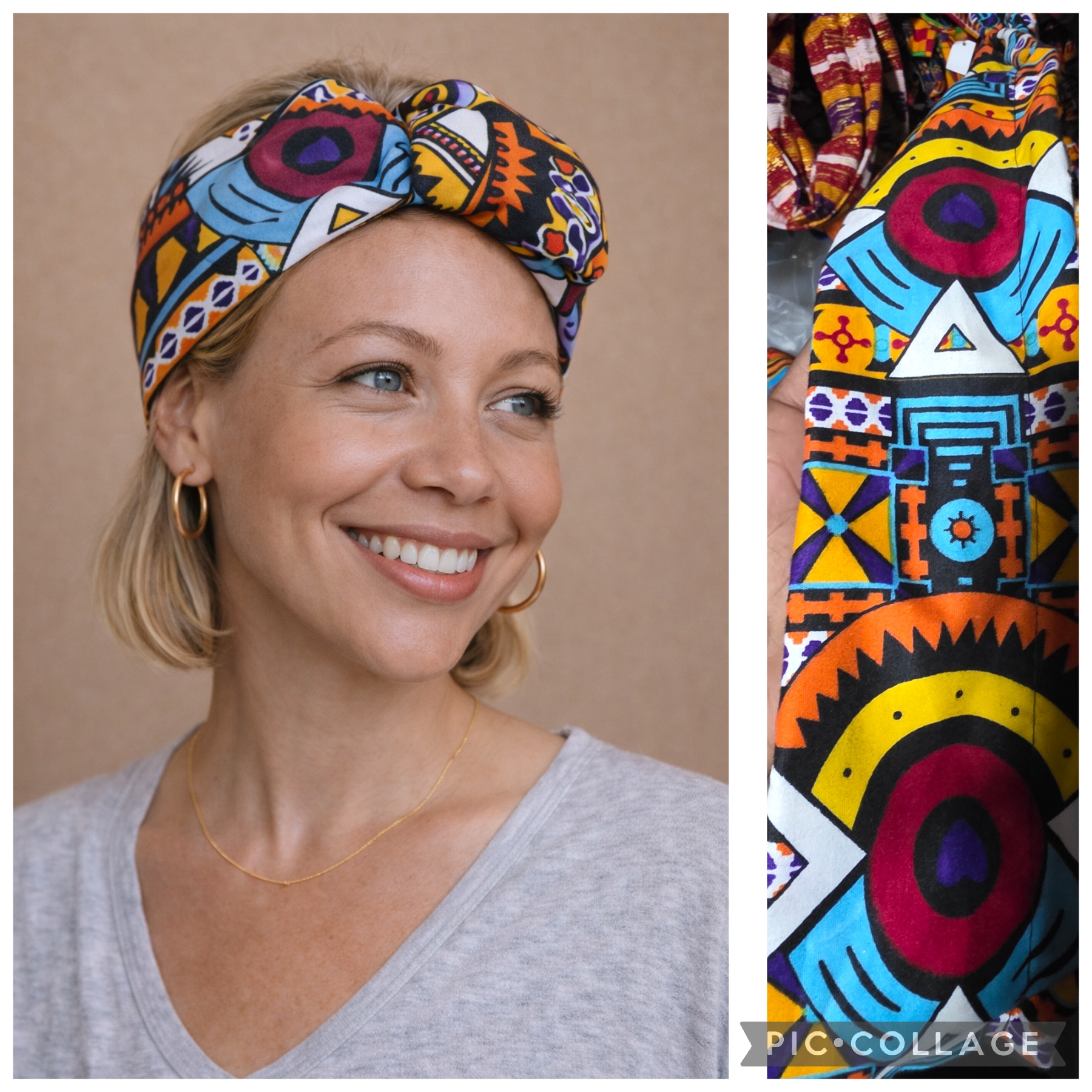 bandeau cheveux flexible  kente géometrique multicolore