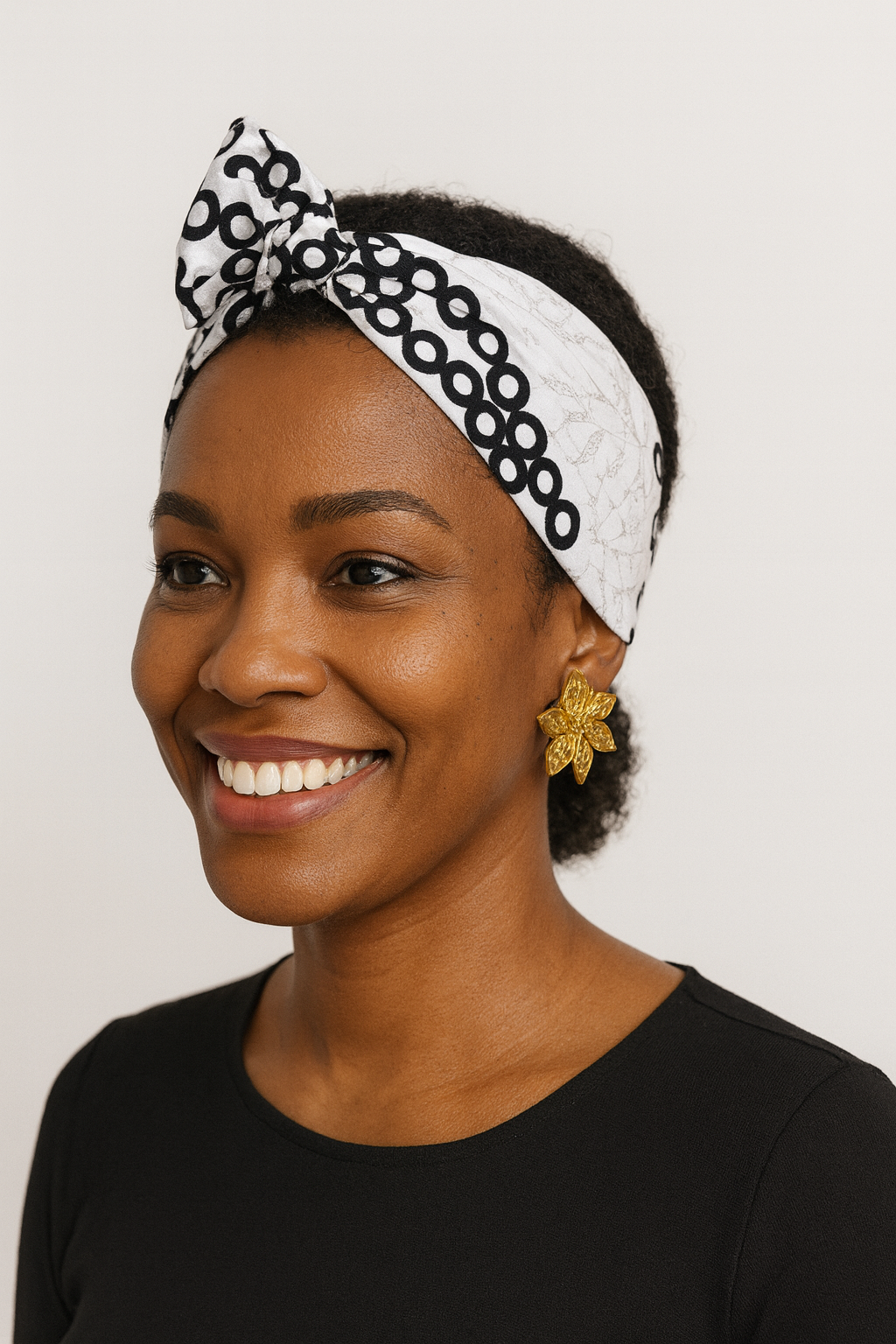bandeau flexible noir et blanc motif graphique- fil aluminium intégré