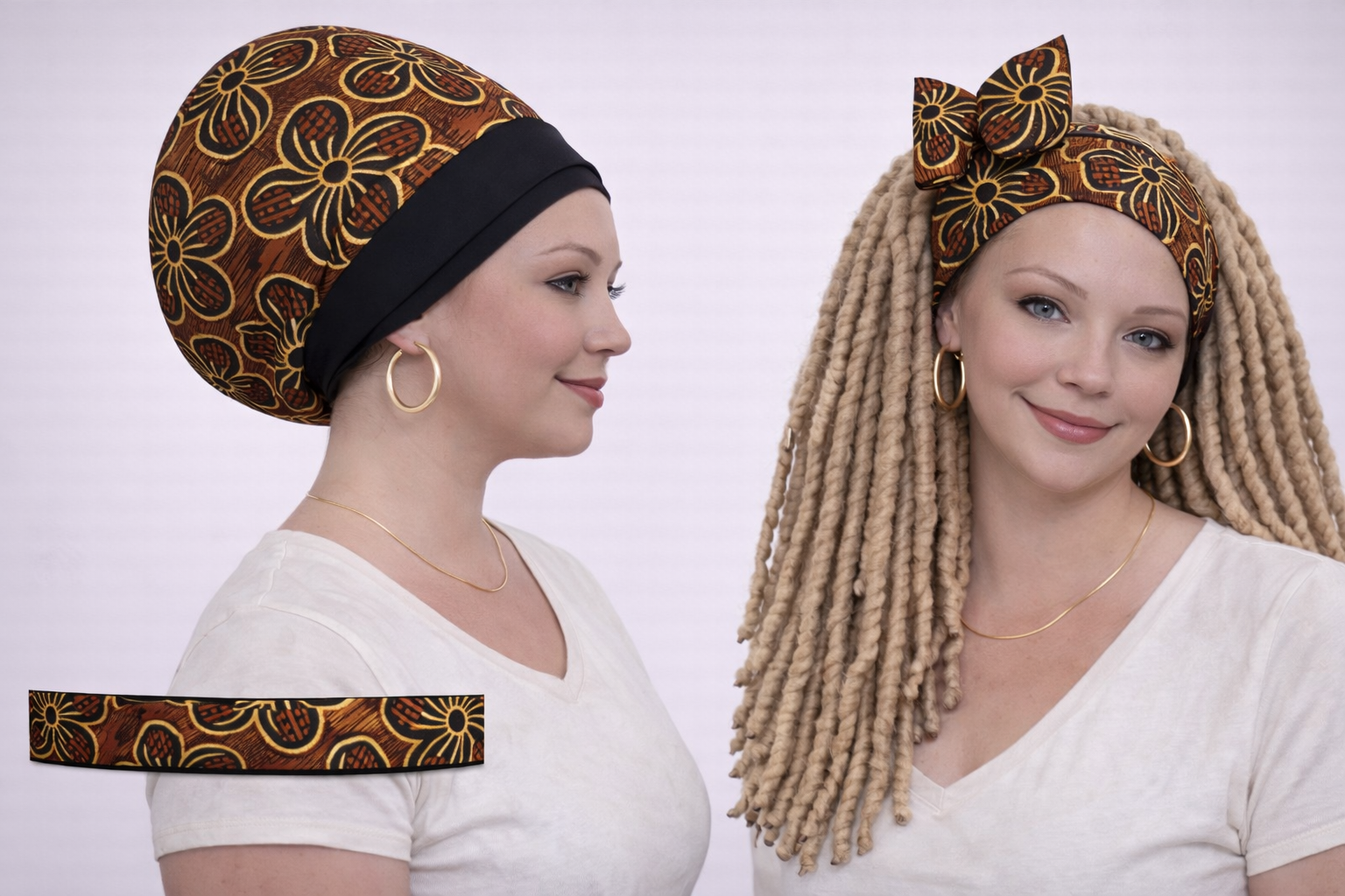 Le turban est un bonnet foulard innovant, conçu spécialement pour les cheveux longs et volumineux (locks, tresses, cheveux naturels).
