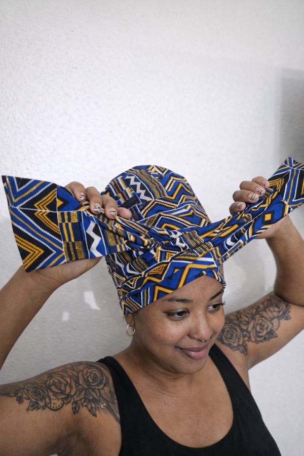Ce modèle révolutionne l’art du turban moderne : 2 pièces complémentaires, pensées pour sublimer les coupes courtes tout en garantissant un maintien parfait.