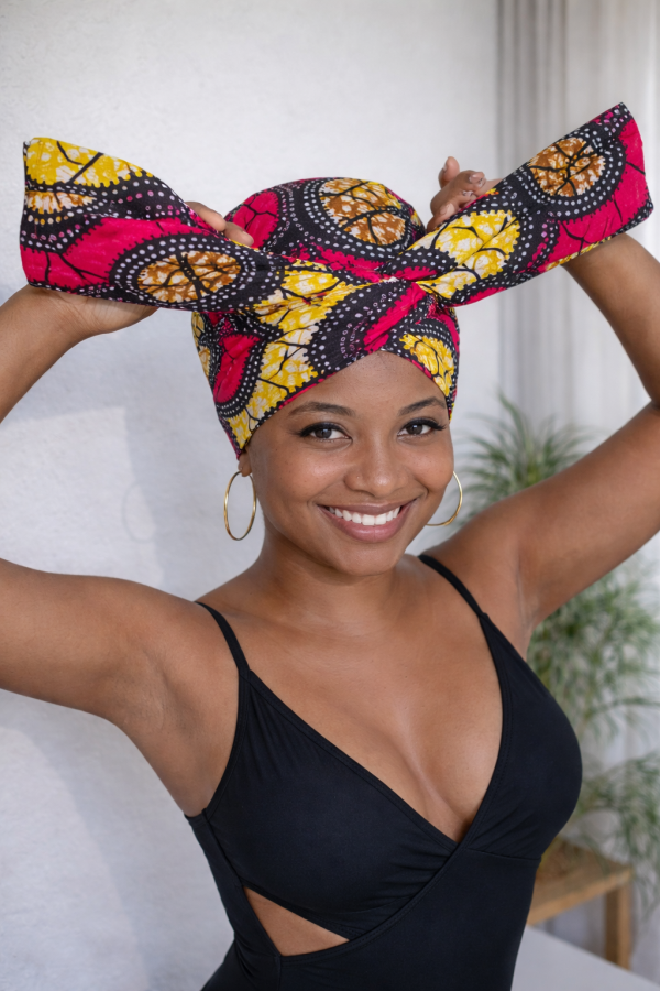 Ce modèle révolutionne l’art du turban moderne : 2 pièces complémentaires, pensées pour sublimer les coupes courtes tout en garantissant un maintien parfait.